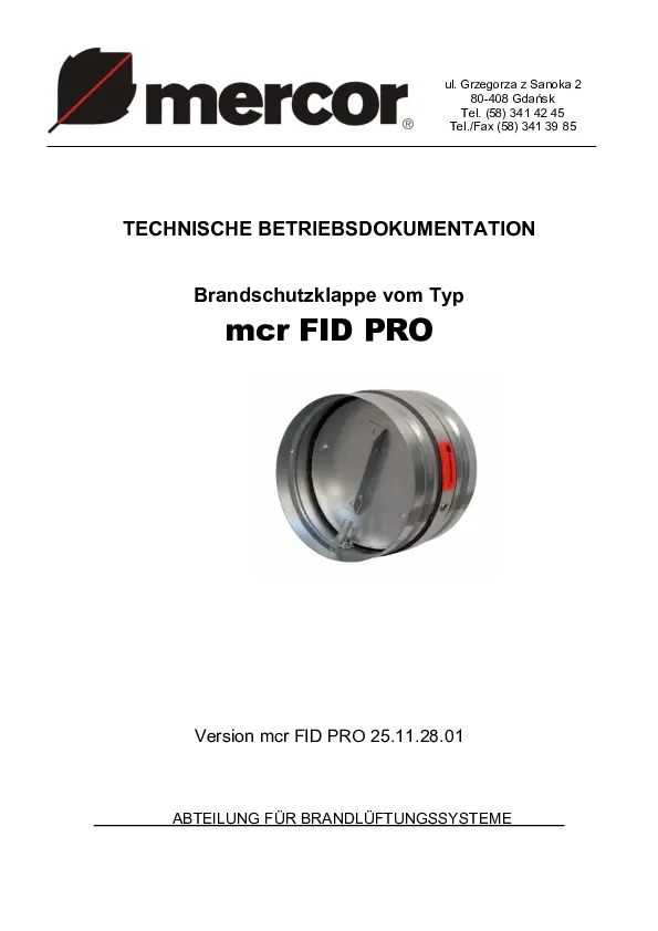 - mcr FID PRO [RST-KW1] – Brandschutz-Absperrklappe für Lüftungskanäle mit Federantrieb und integrierter thermischer Auslösung, optional mit elektromagnetischer Auslösung und Endschaltern ausstattbar
