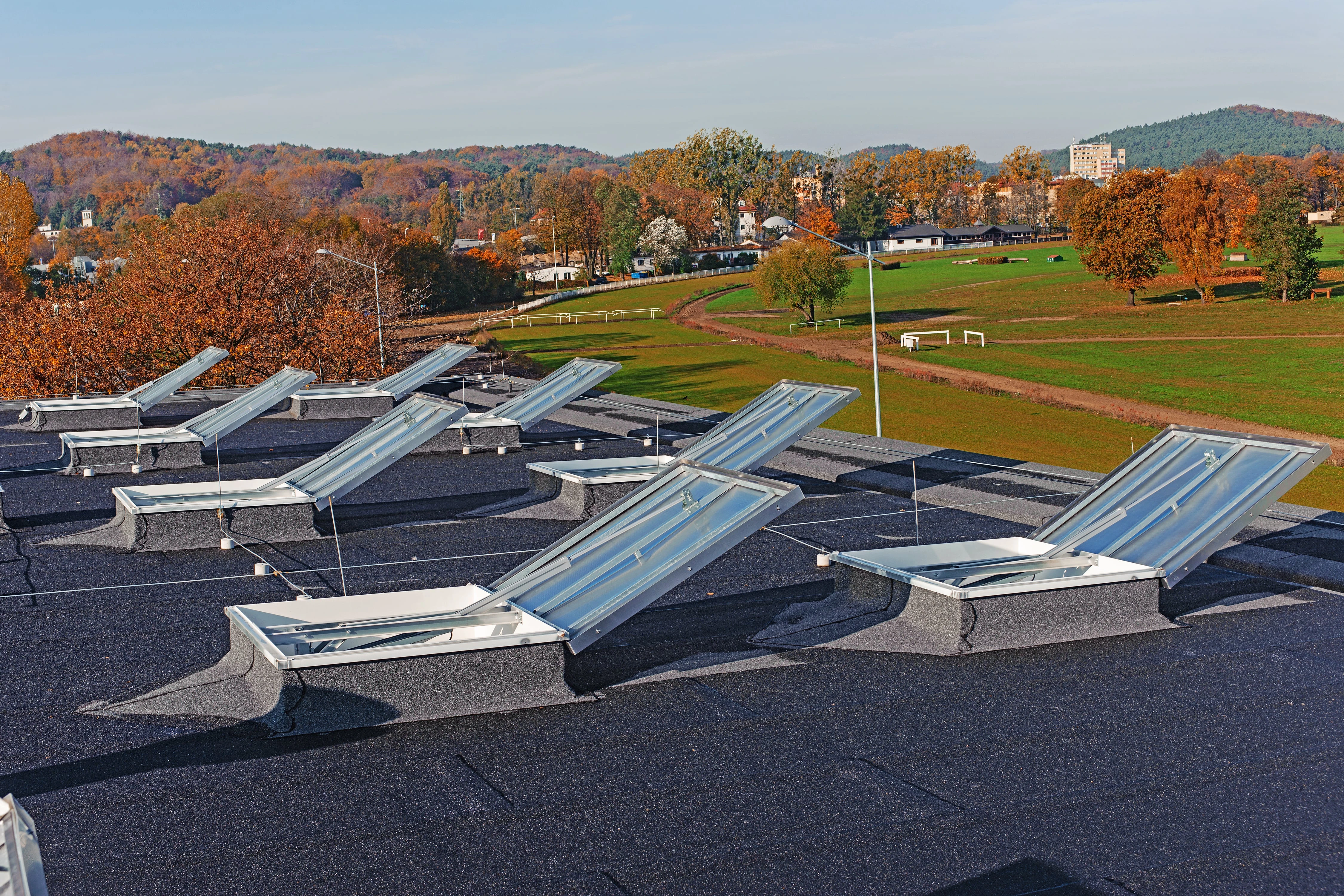 Die RWA-Geräte mcr PROLIGHT mit der Funktion eines Dachausstiegs sind Vorrichtungen, die auf Flachdächern oder geneigten Dächern in verschiedenen Gebäudetypen wie: Produktions- und Lagerhallen, Logistikzentren, öffentlichen Gebäuden, gewerblichen und Dienstleistungsgebäuden sowie Wohngebäuden eingesetzt werden.